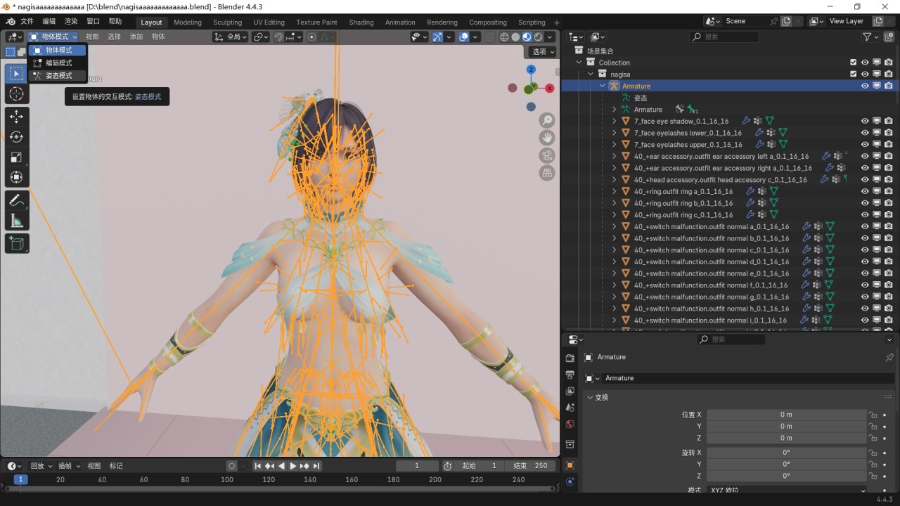 調出被隱藏的骨骼,選中它,點擊左上角的姿態模式。