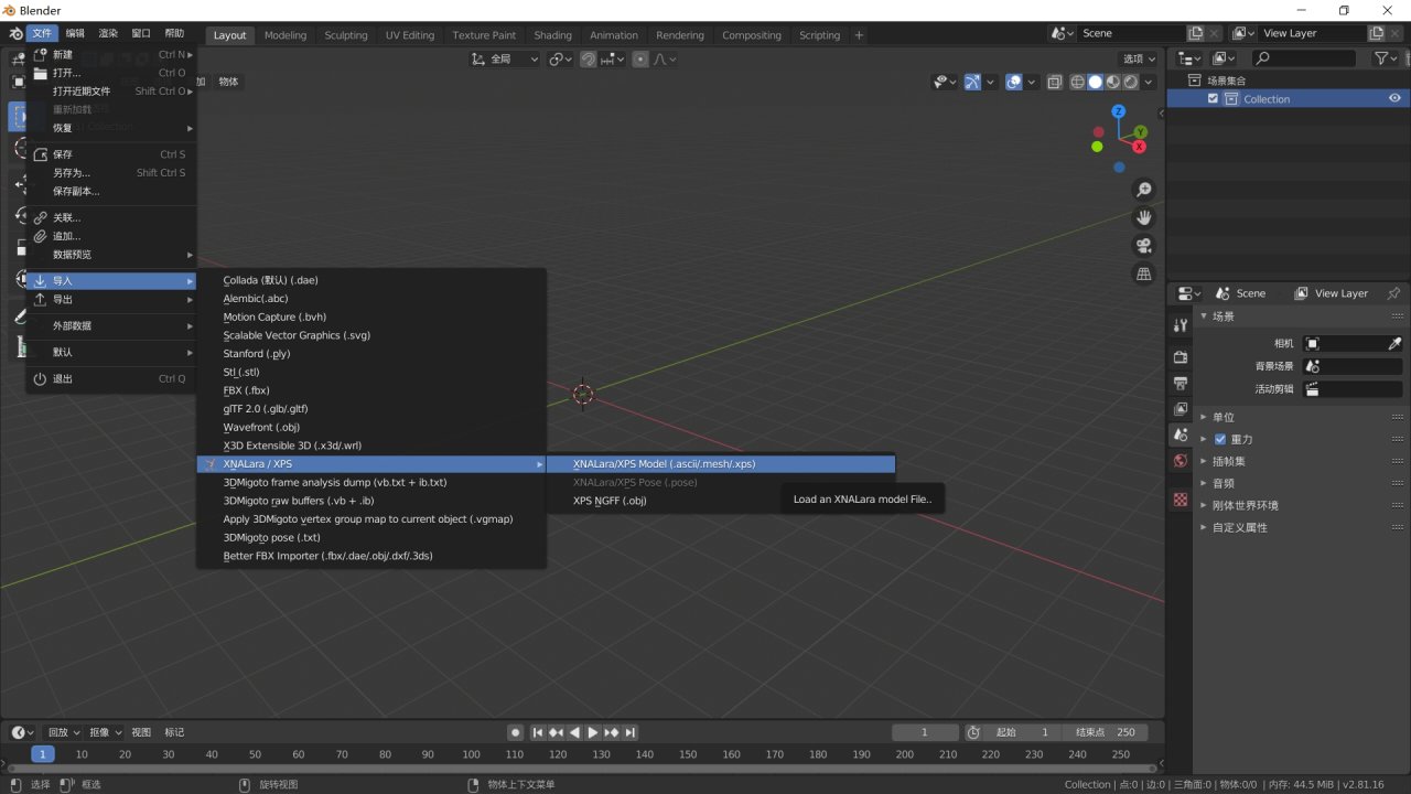 3.將xps模型導入blender的插件