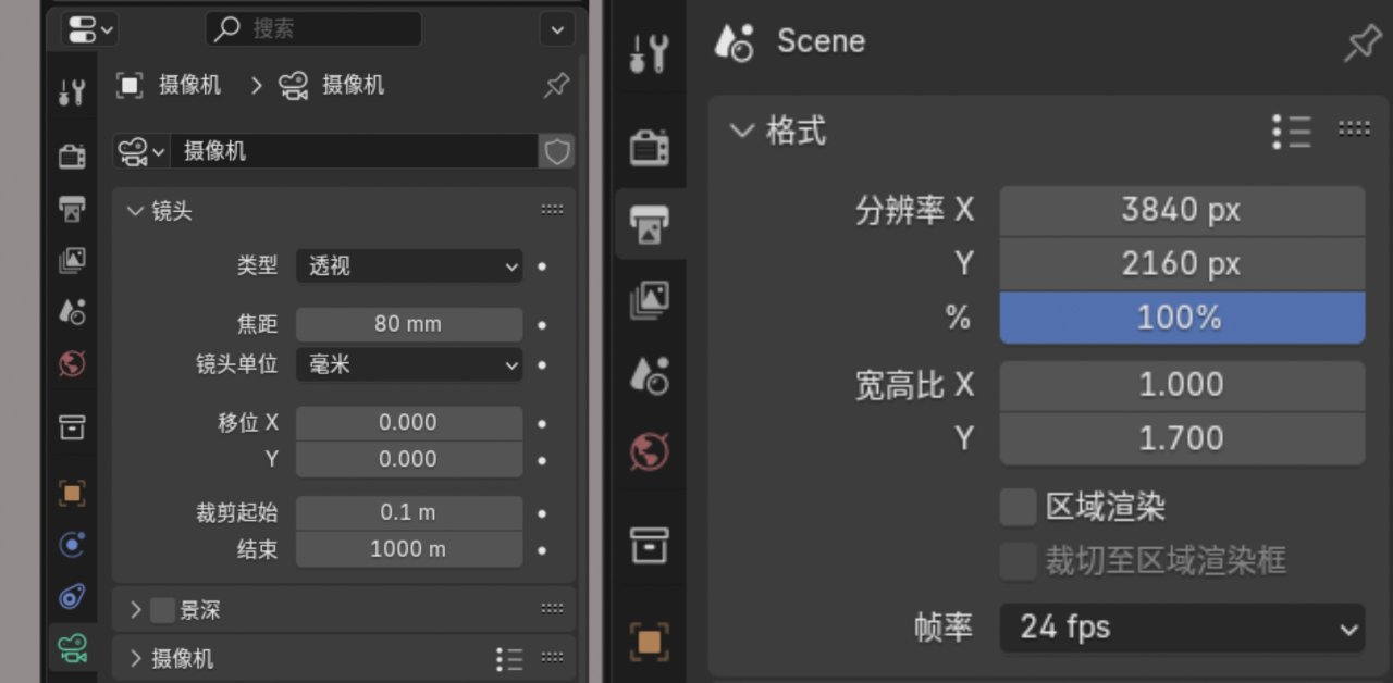 選中相機在這裏可以調整焦距,輸出屬性可以修改渲染圖像的分辨率。