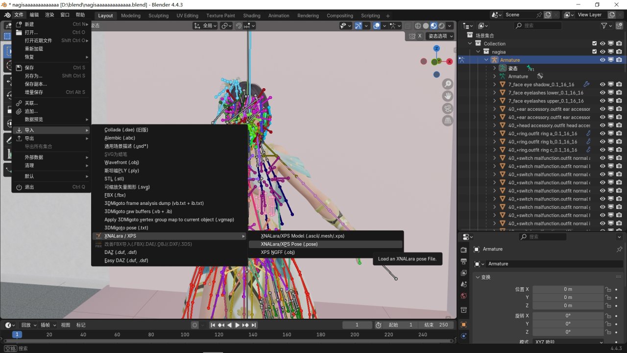 操作比較簡單,但是很繁瑣,想快速看成品的朋友可以使用姿勢包,在D站搜索xps poses就可以找到。由於每個作者模型的骨骼都不一樣,導入後需要手動修改,有的甚至完全不匹配,不過這裏推薦兩個D站作者:
