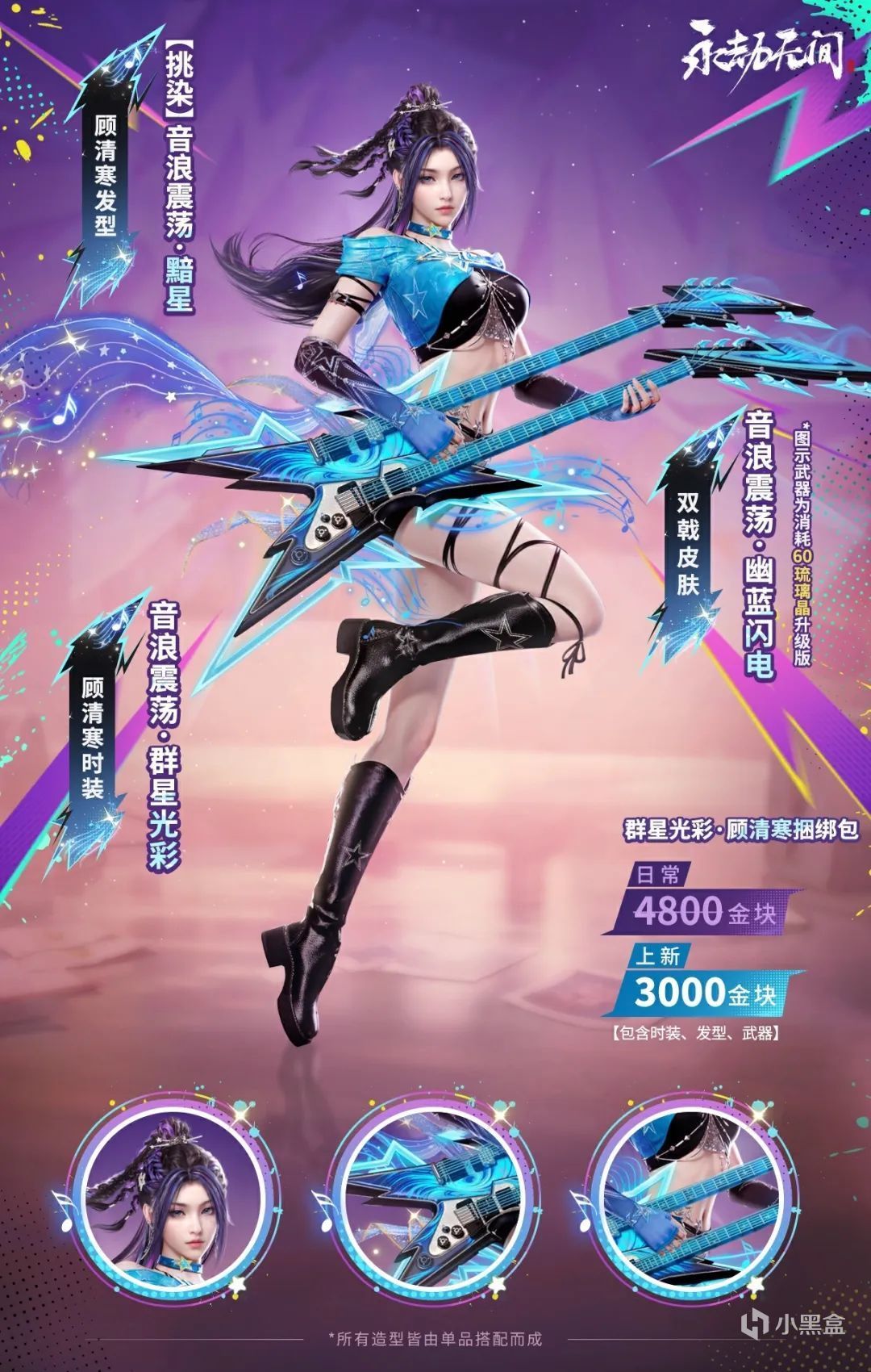 升級後:吉他散發出幽藍的光芒,四周還流轉着熒光音符。