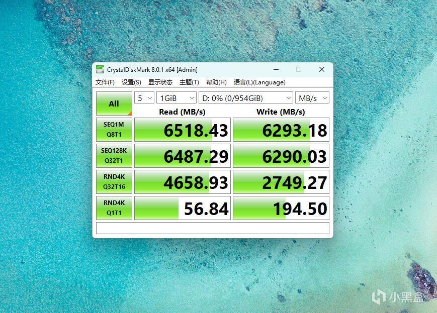▼簡單跑個DiskMark,測試文件大小1GB,順序讀取速度6518MB/s、寫入速度6293MB/s,4K讀取速度56MB/s、寫入速度194MB/s。