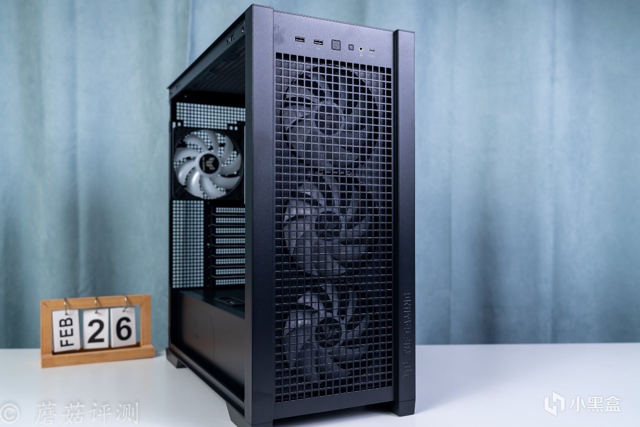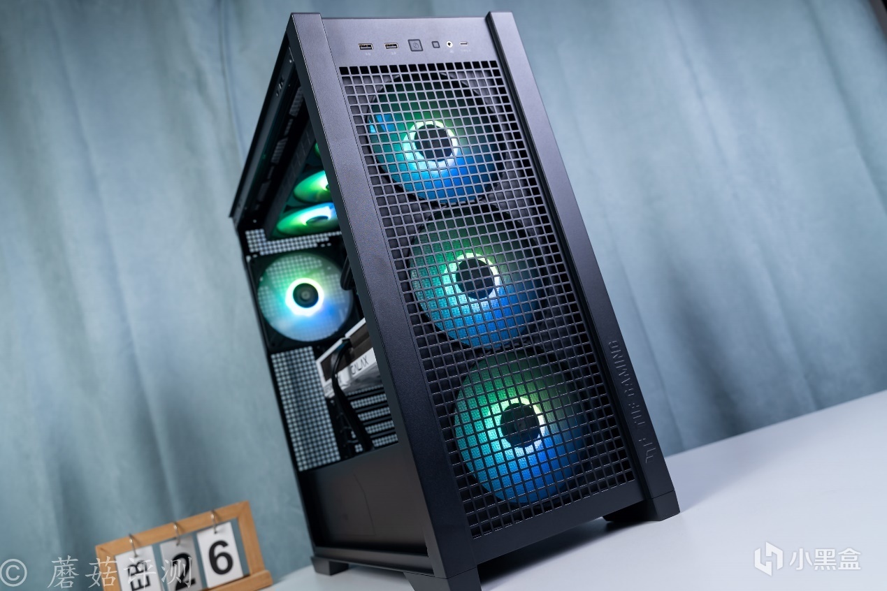▼華碩這款GT302裝備庫機箱標配4把支持ARGB燈效的、140mm規格的機箱風扇,搭配機箱前部的方孔散熱格柵,效果不錯。