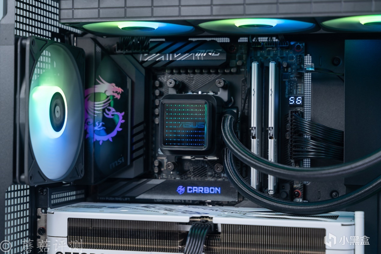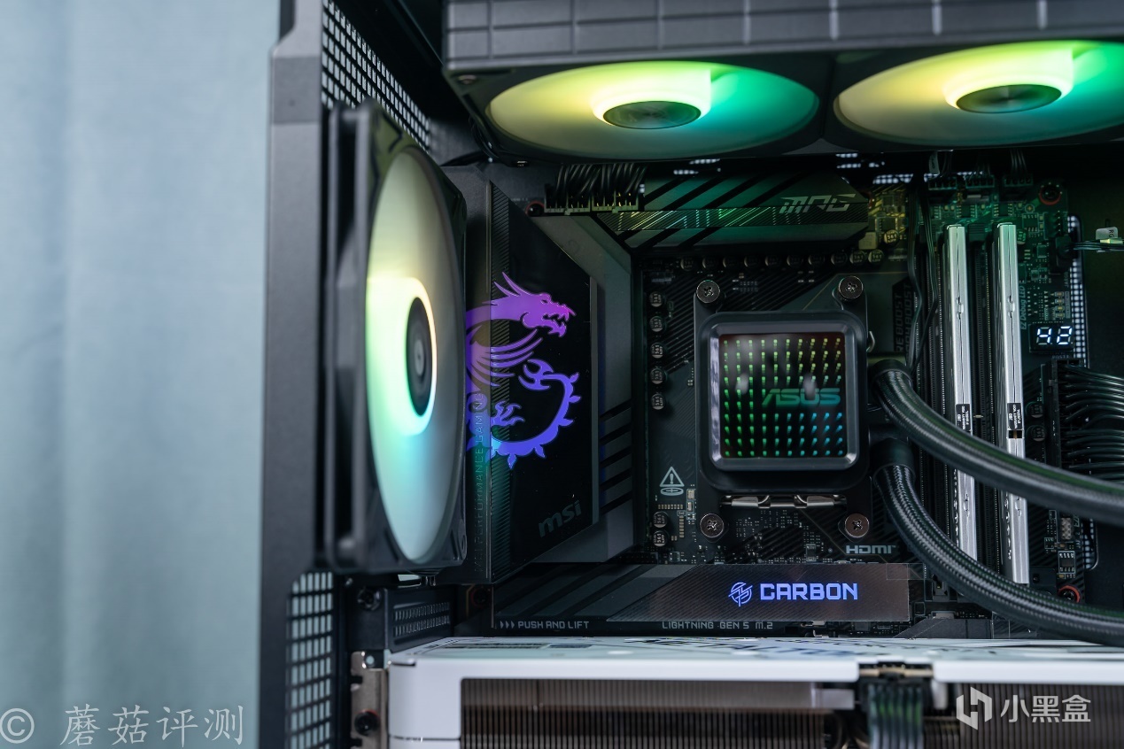 ▼稍微側過一些,可以看到水冷頭頂部燈板的無限鏡效果,質感還是很不錯的。另外,還可以根據自己的需求選擇不同的燈板,後續DIY的空間還是蠻大的。