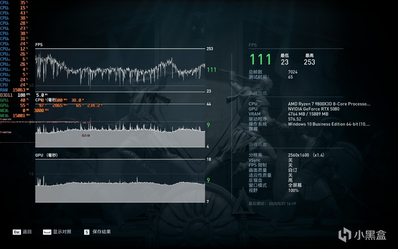 ▼跑個黒神話悟空的測試,2K分辨率,畫質超高,光追超高,超採100。