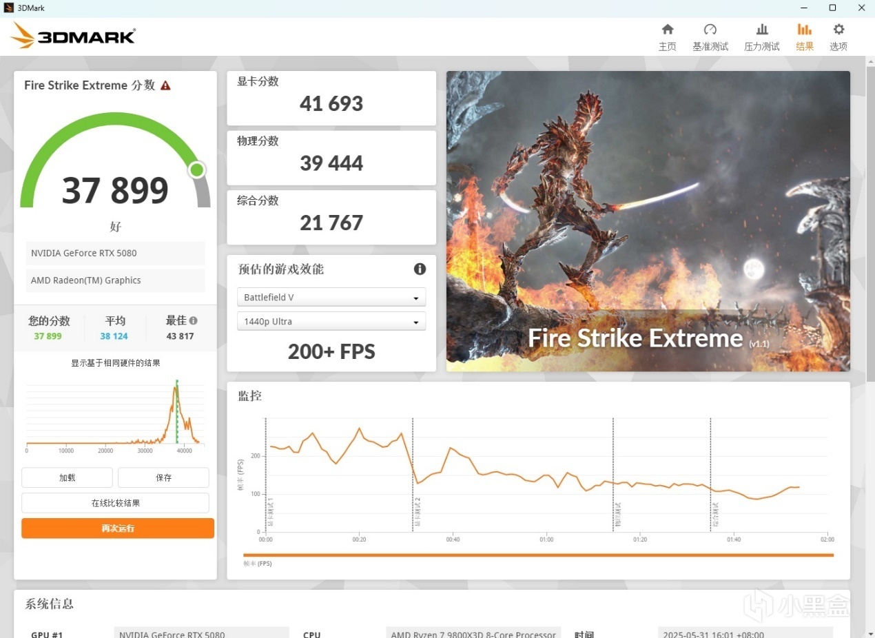 ▼跑個3Dmark的FSE測試,顯卡分數41693,物理分數39444,非常不錯。