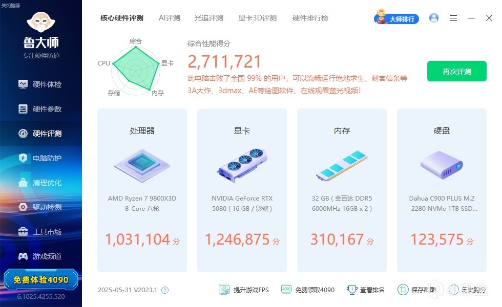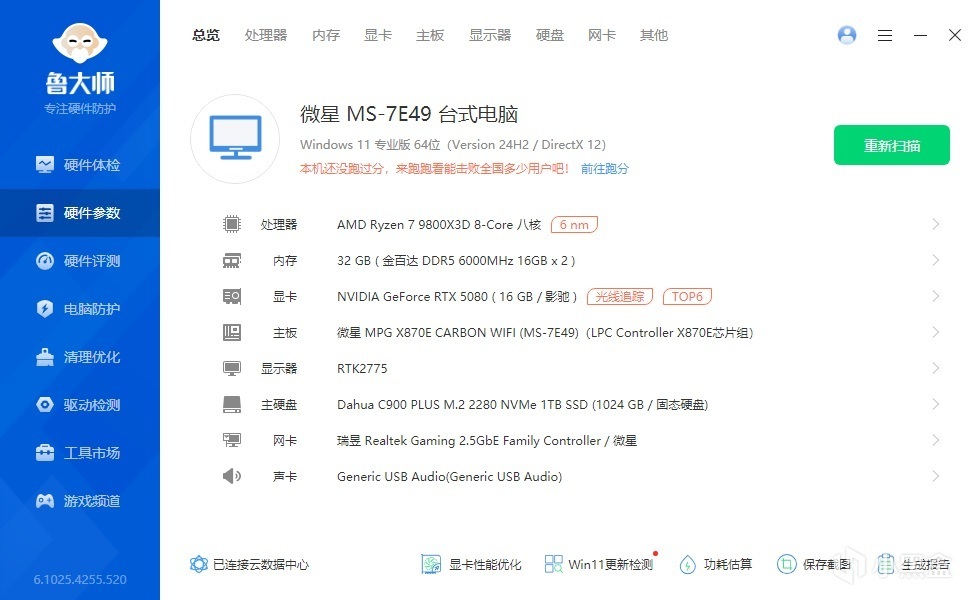 二、9800X3D搭配RTX 5080雙強無短板 硬件配置一覽