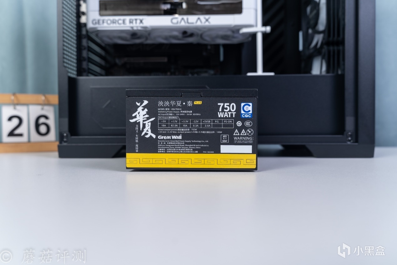 ▼接着安裝電源,長城的泱泱華夏系列秦PLUS電源,額定功率750W,應付9800X3D和RTX 5080沒啥問題。