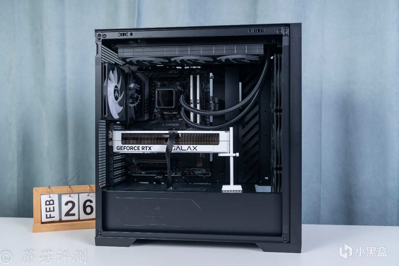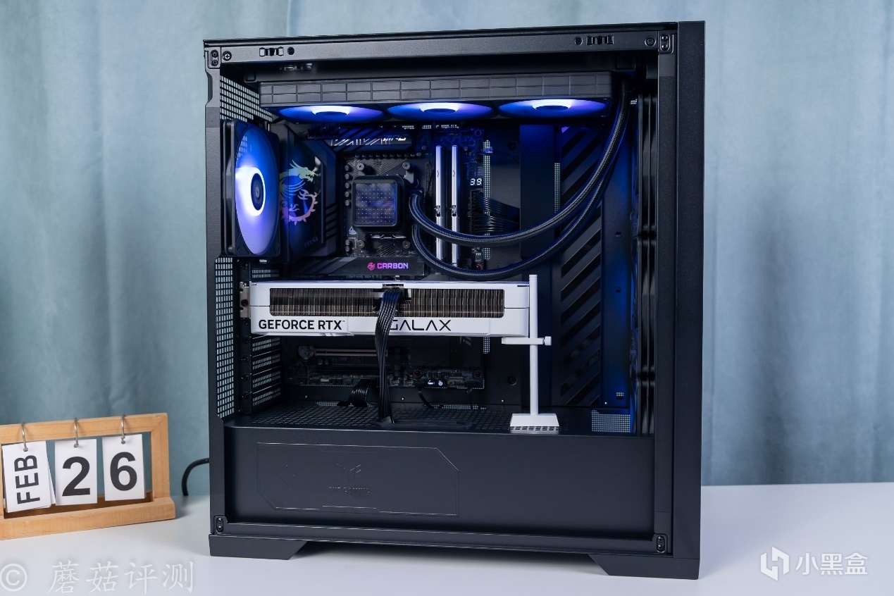 ▼機箱的內部空間超大,一張RTX 5080非公顯卡可以輕鬆安裝,走線空間也十分充足。