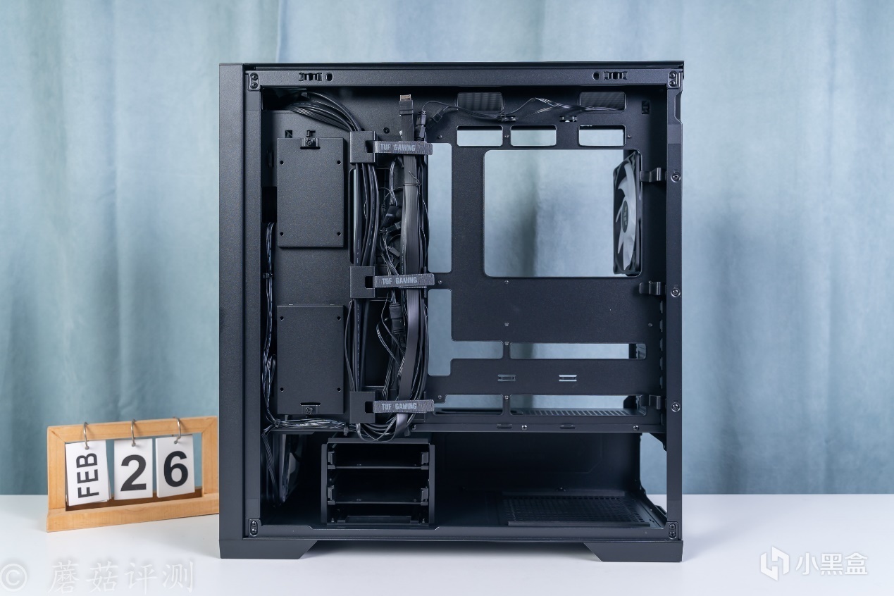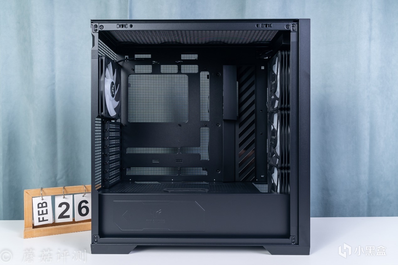 ▼機箱內部的結構非常傳統,底部是熟悉的獨立電源倉,上部是主板和顯卡的安裝空間,支持背插主板,常規主板最大支持到E-ATX,背插主板支持ATX和M-ATX兩種。