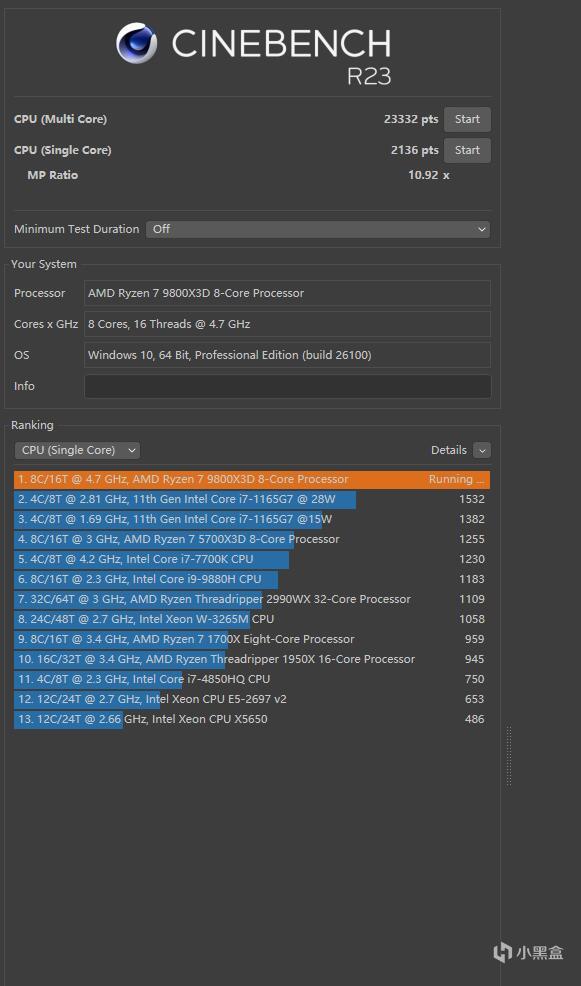 ▼跑個CineBench R23,單線程得分2136,多線程得分23332,性能表現非常不錯。