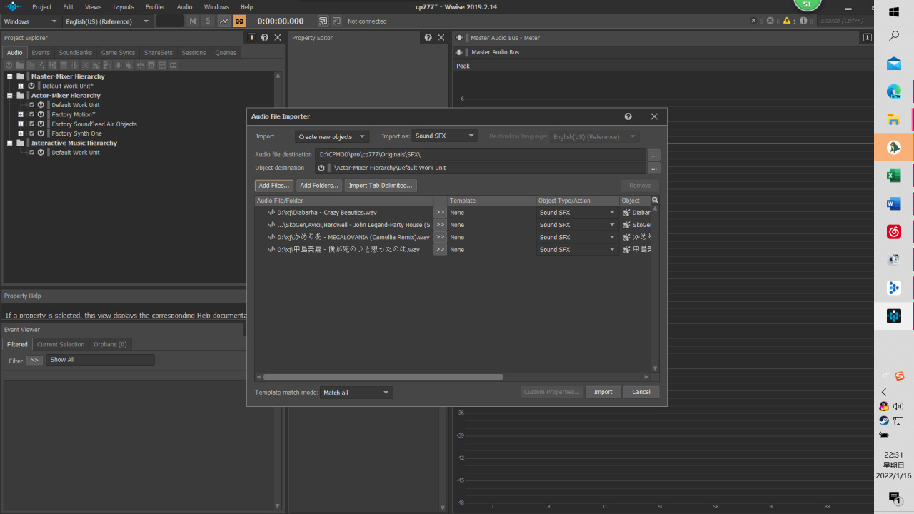 這一步我是在SFX文件夾裏面完成的,改名和移動文件到soundbanks步驟不做要求,不會影響下一步(改名這一步驟略顯繁瑣,但目前未找到更快捷的做法)