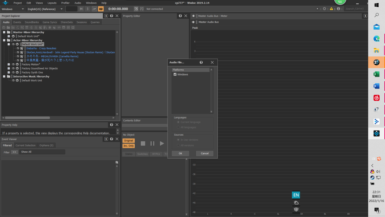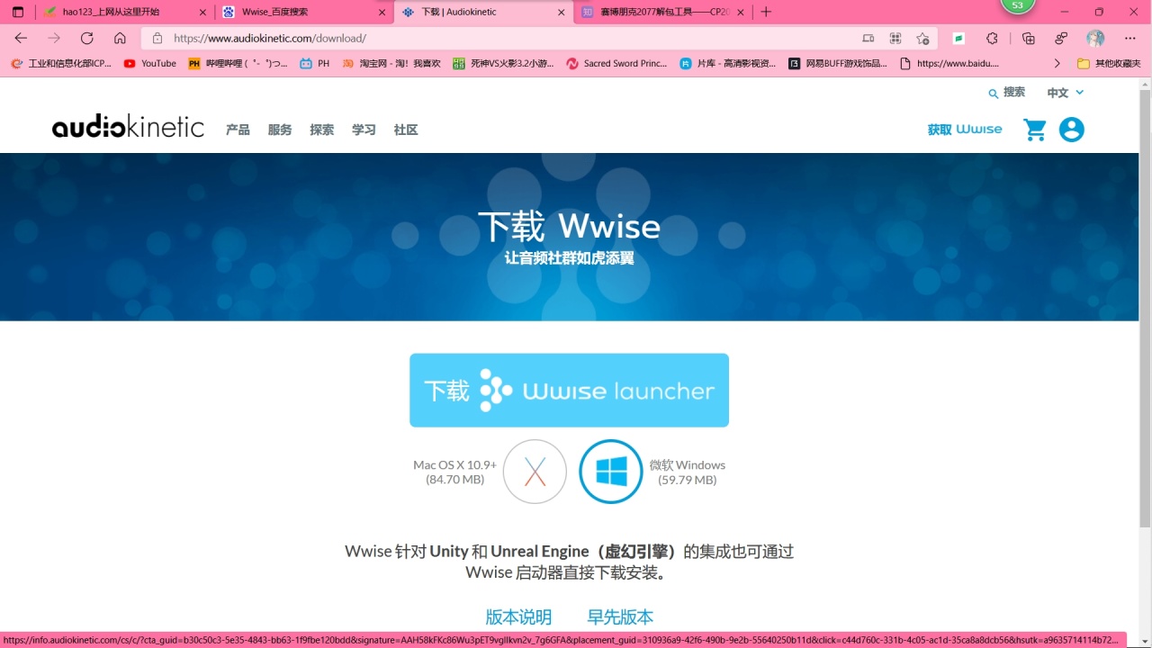 三、下載使用Wwise(https://www.audiokinetic.com/download/ )網站有中文但該軟件沒有中文。註冊audiokinetic賬戶,軟件需要登錄使用