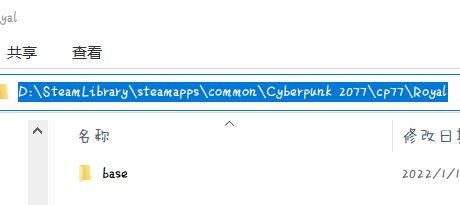 舉例:我的電臺MOD在這個路徑下 , D:\SteamLibrary\steamapps common \Cyberpunk 2077\cp77\Royal,MOD文件夾名爲Royal,則完整指令爲