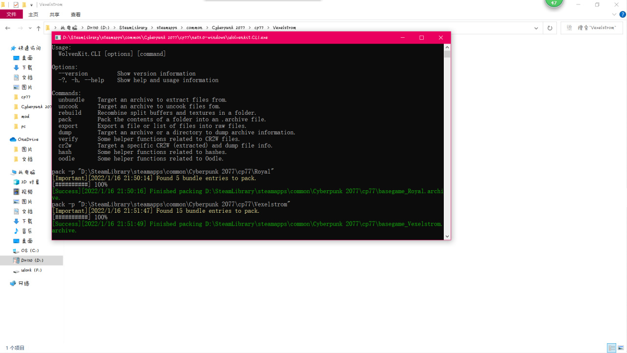 將MOD文件夾放在WolvenKit.CLI文件夾同目錄下