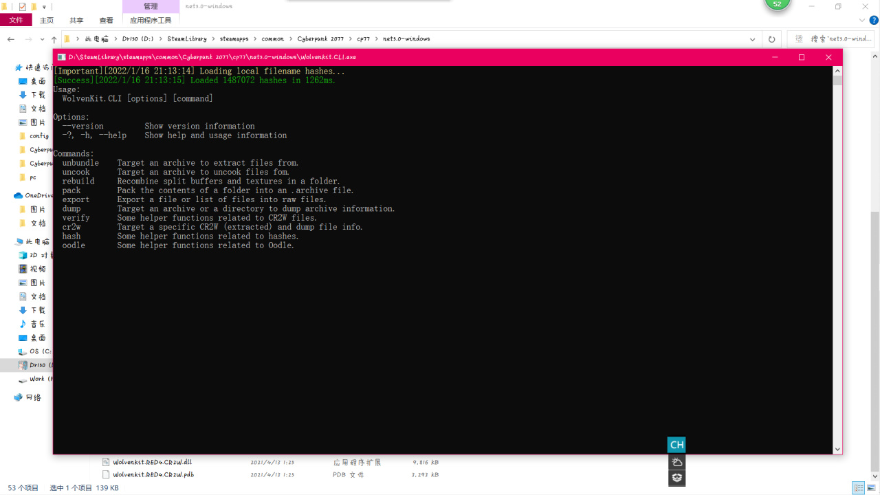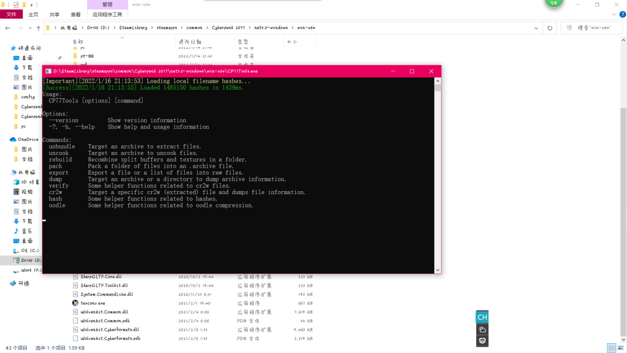 因爲版權的問題,解/打包工具需要用到2077的一個dll文件,但沒有辦法附帶在工具裏。在遊戲目錄裏可以找到這個文件,地址爲: