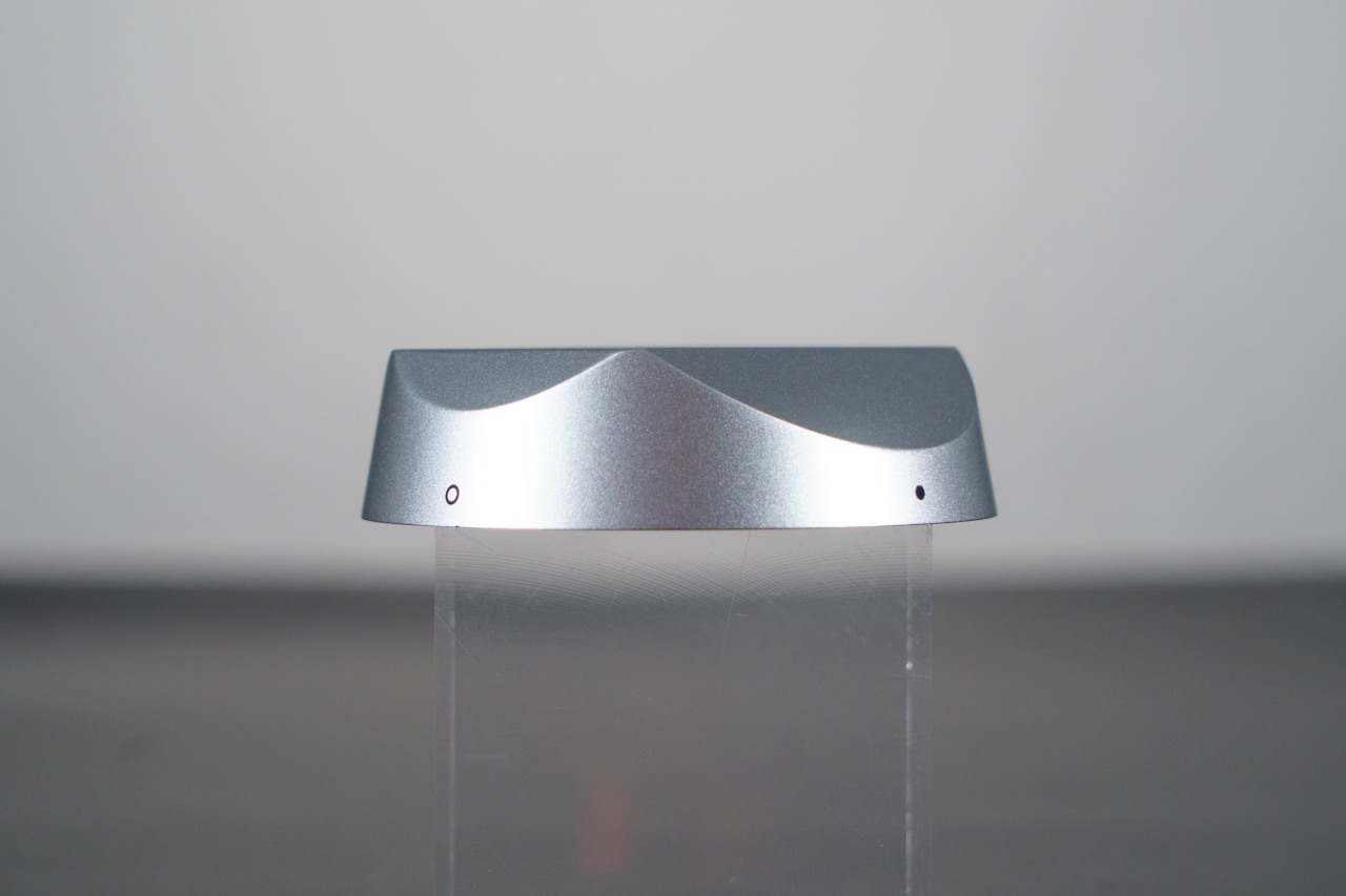 ▼首先鏡頭主體是銀色的,頂上的鏡頭蓋和底下的卡口蓋是黑色的,鏡頭表面質感蠻不錯的,冰冰涼的摸着很舒服
