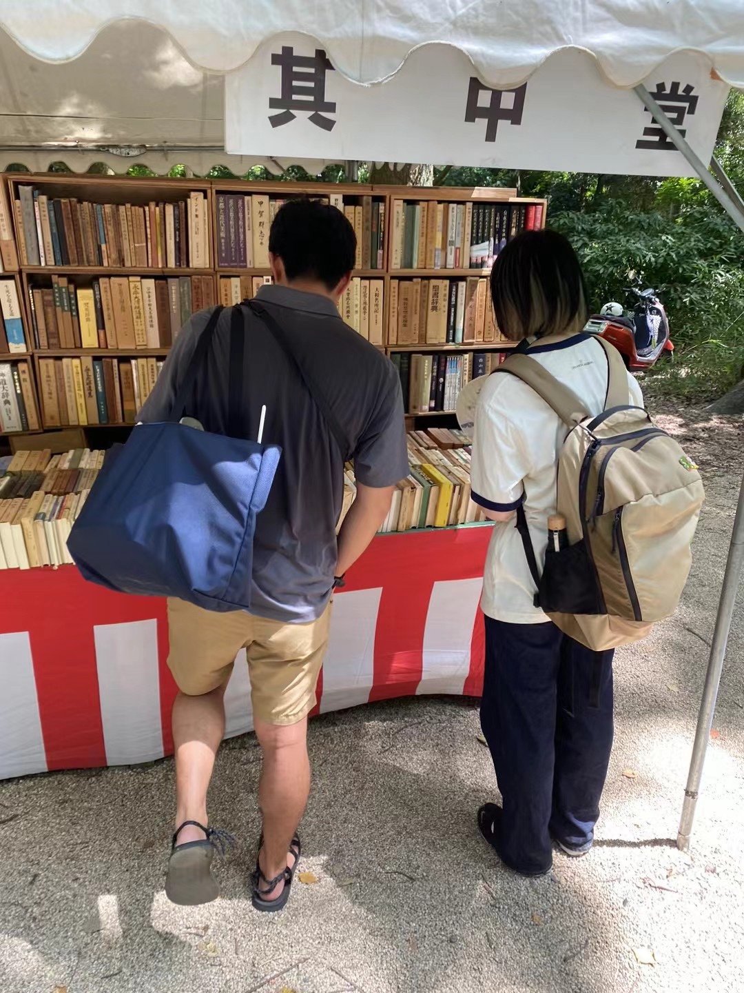 对我来说,京都其实是一座带有滤镜的城市,它寄托着我对于“四叠半”以及“春宵苦短”中那座城市的幻想。参观了古色古香的京都大学,吃上了四叠半男主一直想要吃的意面,行走在伴有习习凉风的鸭川之上,总是有一种不真实的惬意感。在鸭川也很幸运的踩上了纳凉书展的尾声。书展的规模很大,可以看到有不少中老年人在挑选便宜的二手书。四叠半中的书展就这样具象的展现在了我的面前,感受完热闹的氛围之后,由于实在是对于日文一窍不通只能遗憾离场。随后逛了逛极其富有特色的伏见稻荷大社,看到了千本鸟居(人真的超多),由于节省体力,最后并没有爬上山顶……但是其实也没这个必要,因为上面的风景其实也就那样吧。