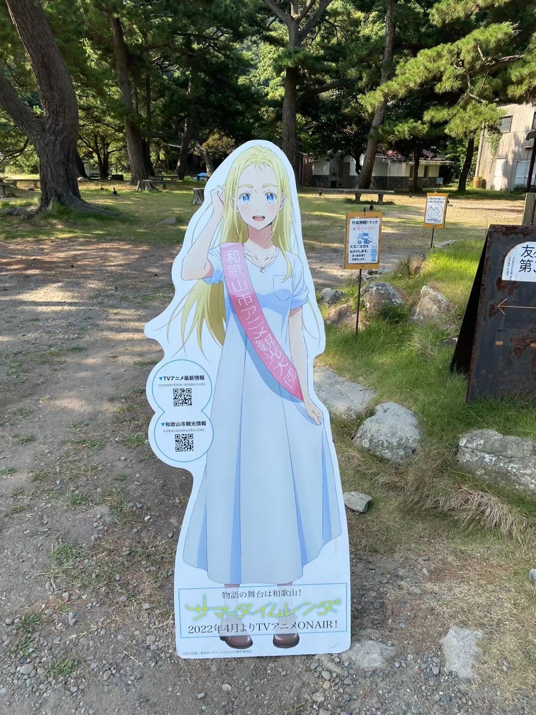 登上了动漫中的影子岛——友岛,整体来说岛真的挺大的,而且几乎所有的路程都是要靠步行,加之又是各种山路和爬坡,也有可能是我在日本第一次走这么多路的缘故,和歌山之旅真的是我感到最疲惫的一天。友岛的自然环境很好(或者说开发度严重不足),岛上有潮的立牌(潮已经成为和歌山的旅游大使了!)和各种夏日重现的因素,还有着夏日重现的圣地巡礼纸质地图,但是由于各个景点实在是过于分散,还有各种蚊虫(听说还有蛇),假如不是有着特别强烈的圣地巡礼需求的其实不太建议来。去的那天也是十分炎热,顶着大太阳,看着日光从茂密的树林中投下,听着蝉鸣,仿佛真的回到了那个夏天。