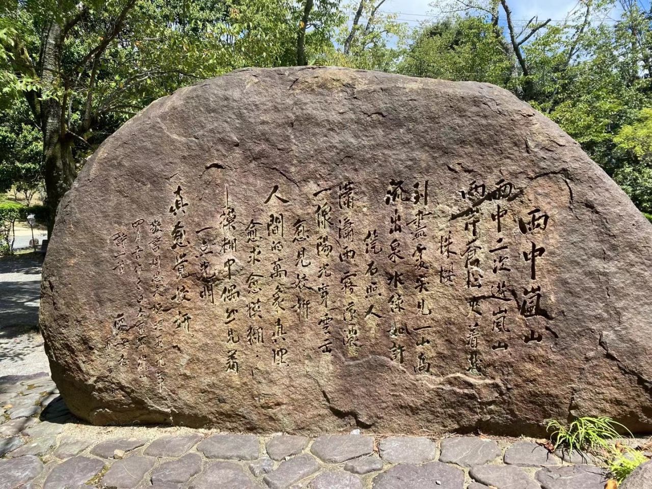 经过渡月桥就能在极其不灵敏的谷歌地图下艰难找到周恩来纪念碑,上面刻着周恩来的《雨中岚山》。靠这边的景点几乎没有什么游客,听说平日还有一个老爷爷会在这里宣传中日友好关系,讲述自己和周恩来的故事,可惜那天去的时候并没有碰到。总的来说,假如对于岚山抱有太大期待来的话恐怕是要失望的,夏天真的十分不推荐来,看不见红叶而且十分炎热,真的不如国内大部分山川景点。