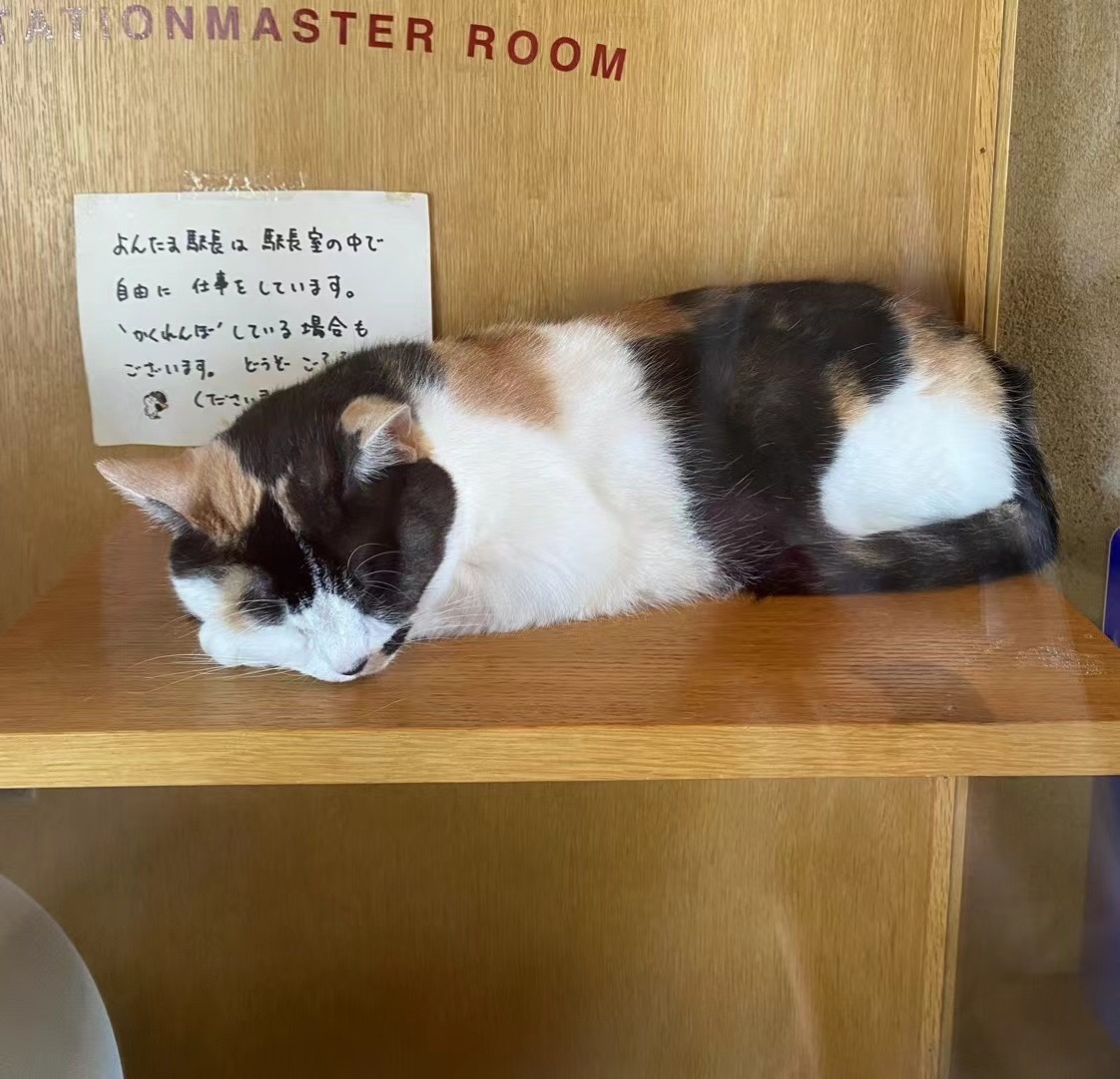 下午坐了猫猫电车(一条很传奇的电车线,本来由于这条线路坐的人太少差点关闭,后来当地委派了猫猫做站长,还重新把电车改造成了富有猫猫元素极其可爱的列车,让这条线路起死回生),我去的那天正好赶上一只猫猫站长休息,只看到了一只,有点小遗憾。或许是因为比较网红,感觉电车上听到了不少汉语(笑)。