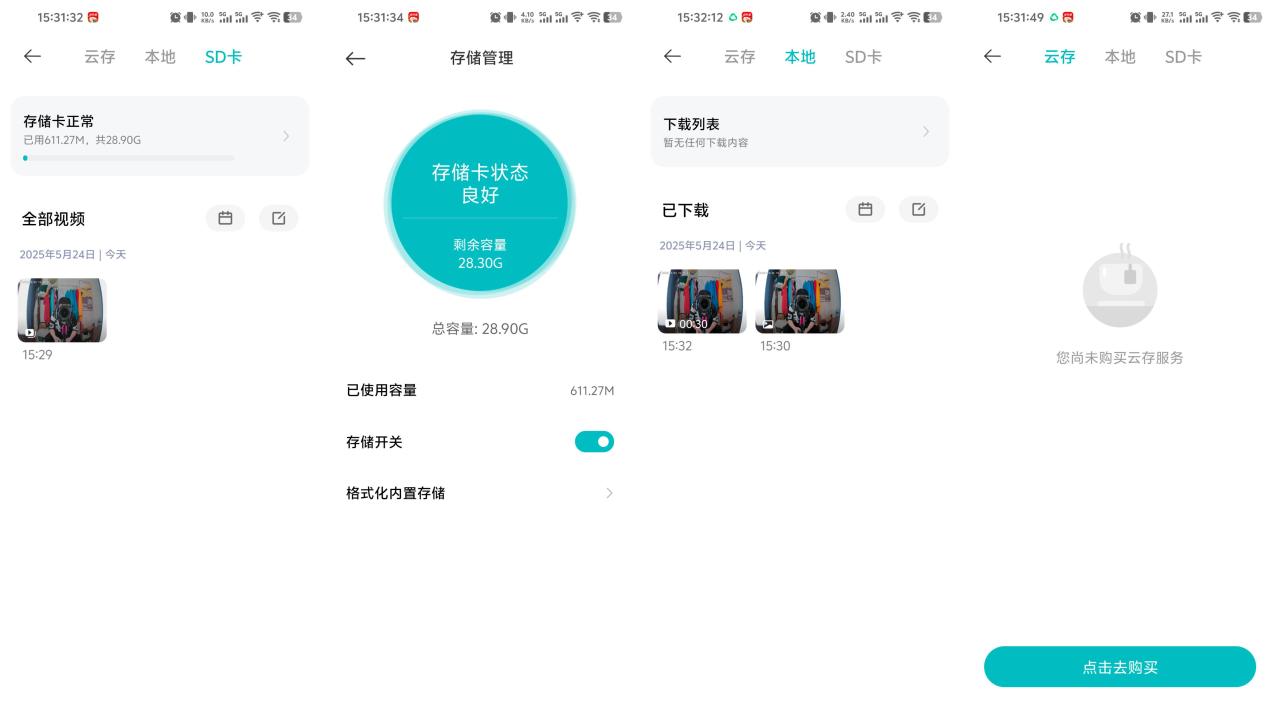 ▼存储管理就是回看的入口,里面有云存储、本地和SD卡,其中本地主要是存放你手动截屏和录制的画面,以及下载的回看内容,SD卡就是存放所有自动录制的视频,可惜它不支持NAS存储