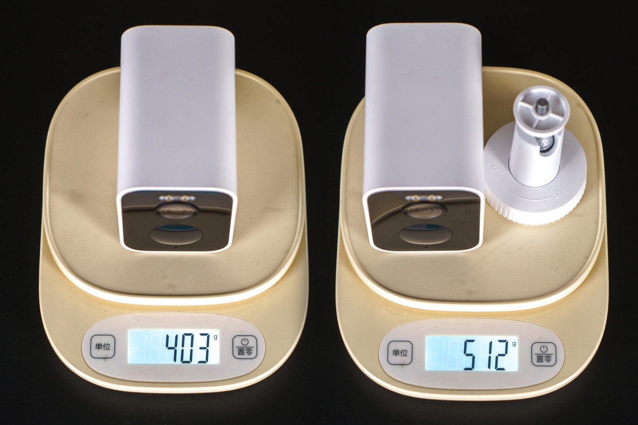 ▼机身有403克,加上支架有512克,如果安装的点位不是非常坚硬牢固的结构,可以先了解一下它的重量