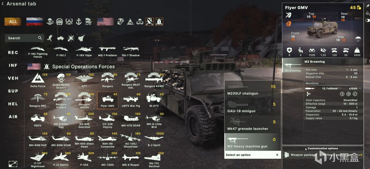 主武器可選擇.50重機槍,榴彈發射器或者兩者結合,擁有1750的視野