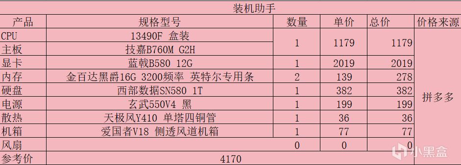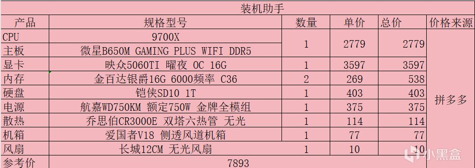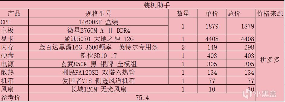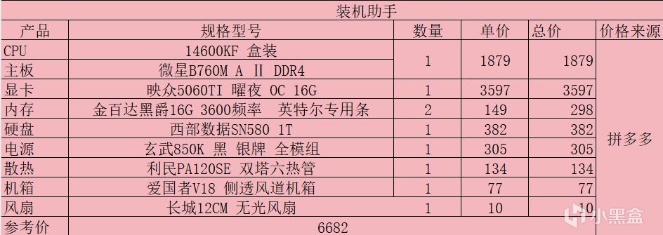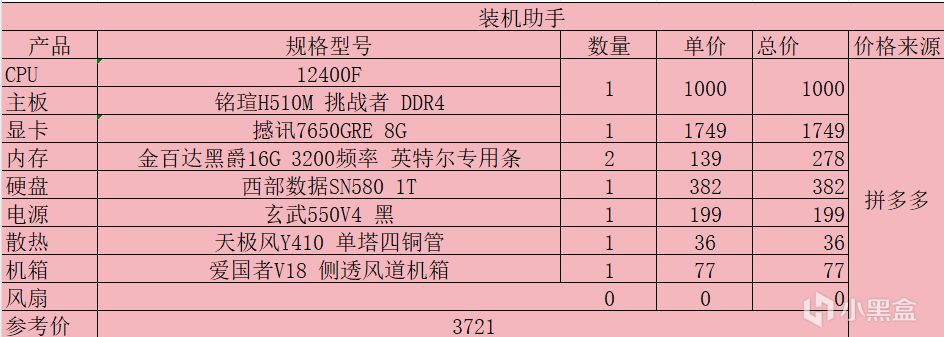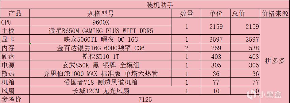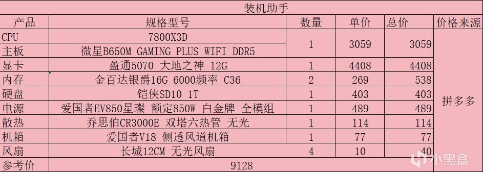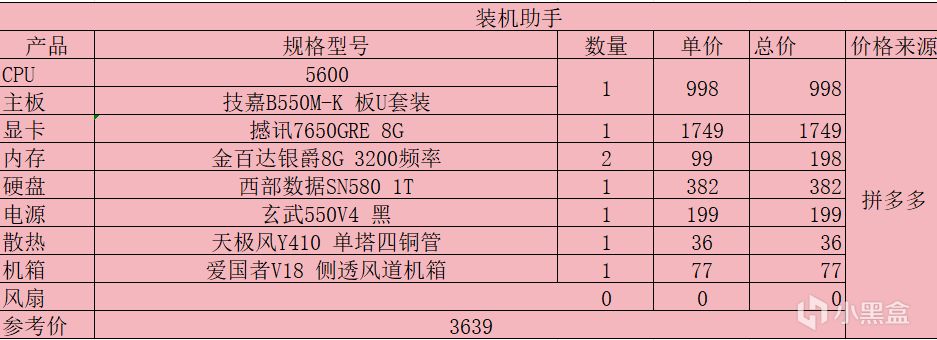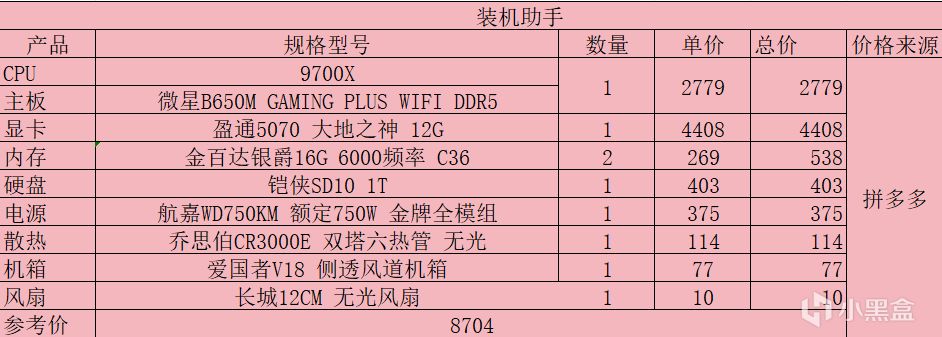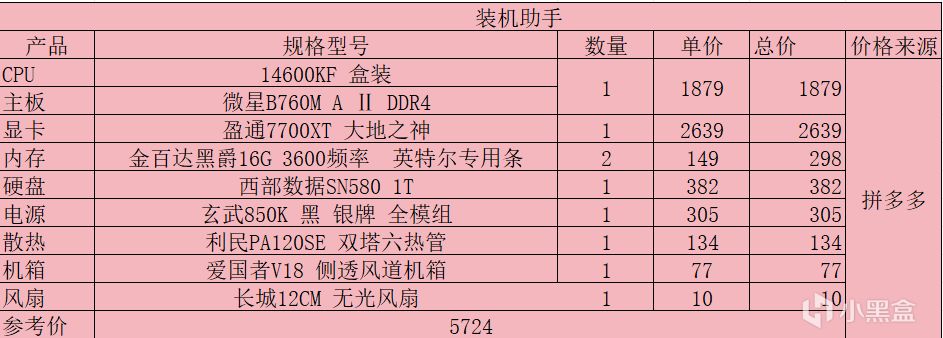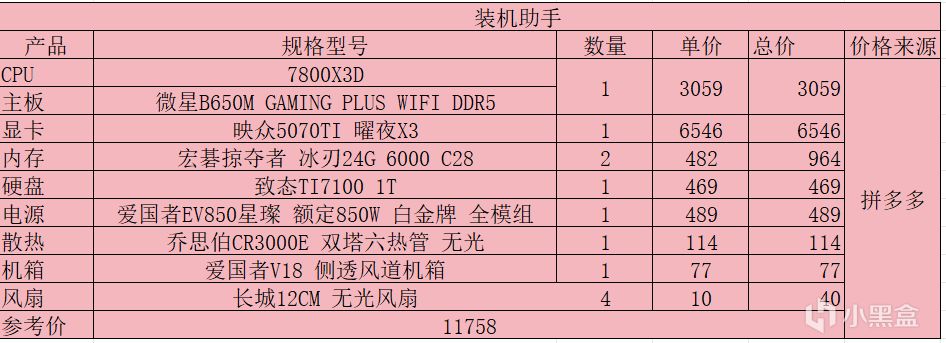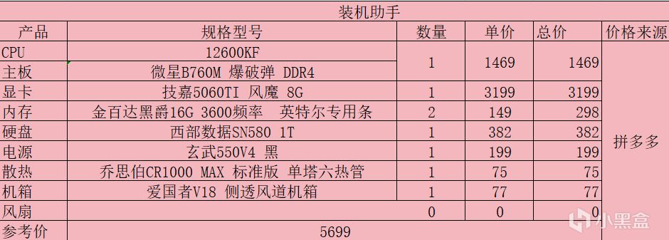 那麼正片就開始了,再次強調,這裏的配置僅供參考,單價以及價格來源都標註出來了,絕對透明,有問題也歡迎指出。