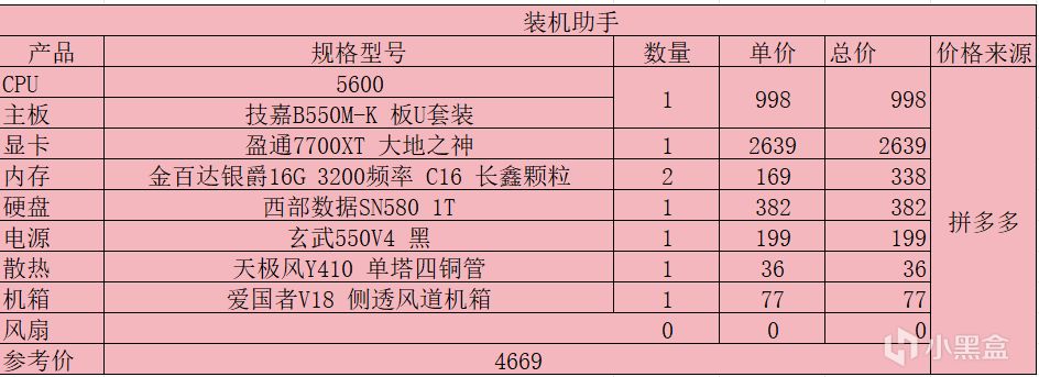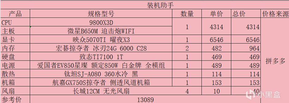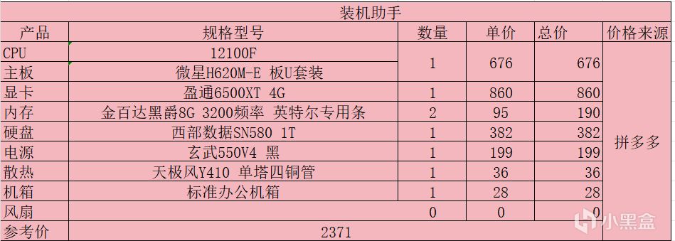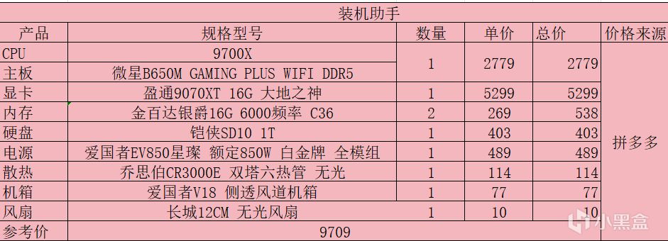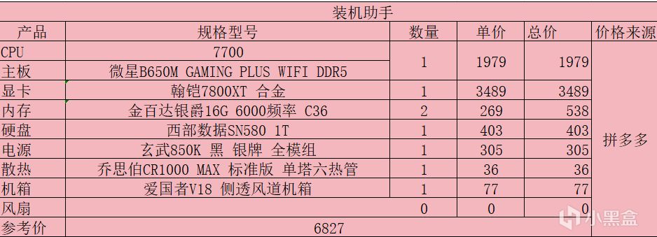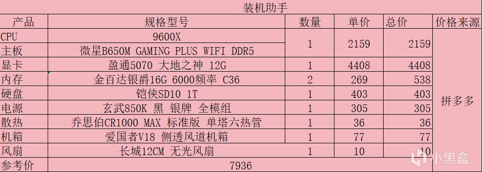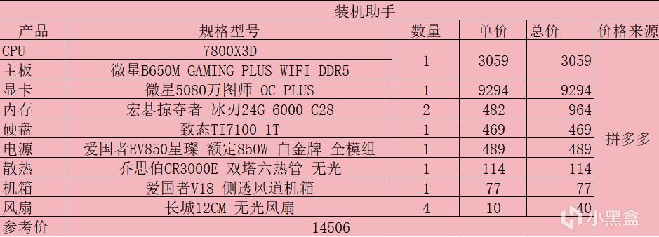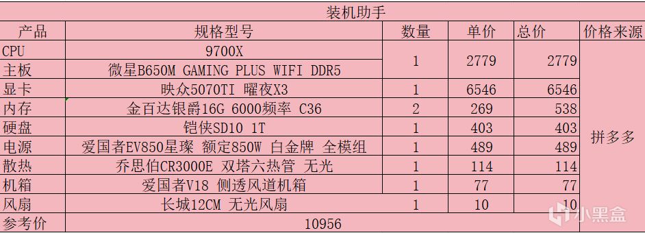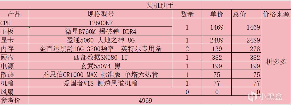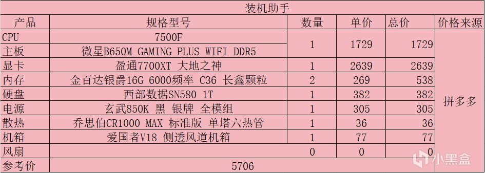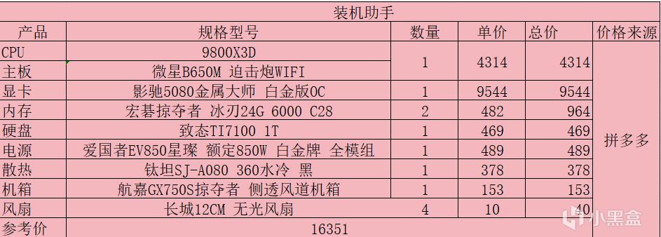 那麼正片就開始了,再次強調,這裏的配置僅供參考,單價以及價格來源都標註出來了,絕對透明,有問題也歡迎指出。