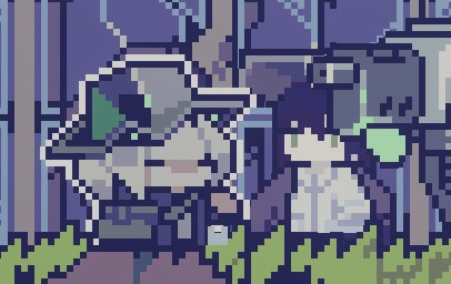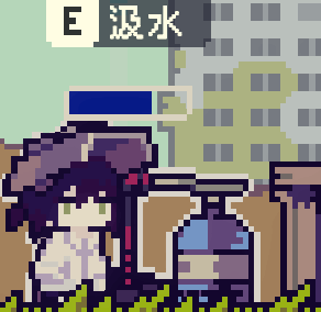 本作的像素铺成的大块,野树树叶是十多个像素拼成的扁圆,草地是大块的三色,有一种高配undertale的感觉,NPC的建筑倒是做的很有特色