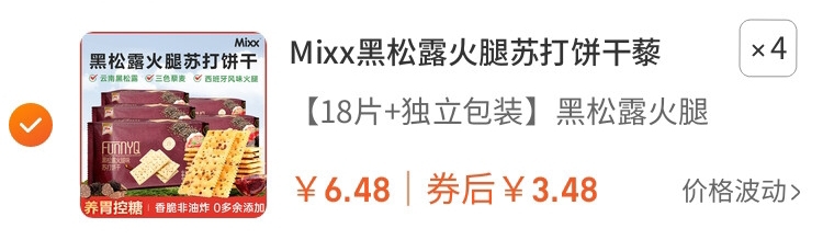 【¥12.53】Mixx 黑松露火腿苏打饼干120g*4袋