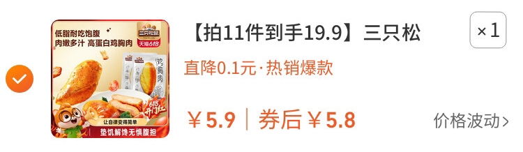 【¥17.82】三只松鼠 高蛋白鸡胸肉50g*11袋