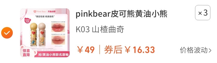 【¥44.82】皮可熊 黄油小熊联名唇蜜*3支