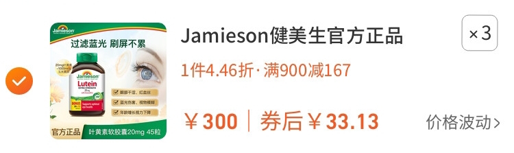 【¥89.46】Jamieson 叶黄素胶囊45粒*3瓶