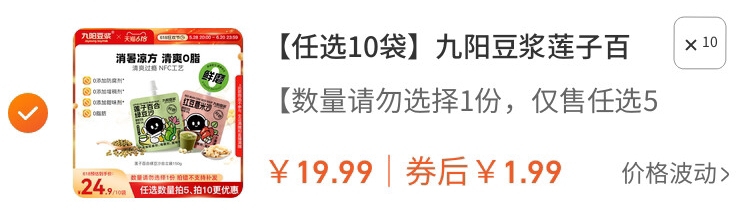 叠加9折消费劵,红豆薏米沙、莲子百合绿豆沙两种口味,拍10件,才折¥1.7/袋。甄选新鲜红豆、绿豆、薏米、莲子、百合等原料,现熬慢煮,香味四溢,入口细腻绵密,不含增稠剂,冷藏喝更清爽。