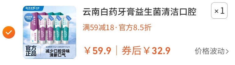 到手:益优冰柠105g*2+益优薄荷105g*2支。添加益生菌CPT,独特冻晶干燥技术,适合口腔的益生菌,抑制有害菌,平衡口腔菌群,去除口腔异味,清新口气,官方旗舰,品质保证。