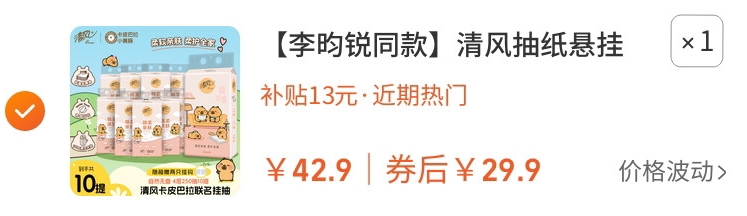 【¥26.91】清风 悬挂式抽纸250抽*10提