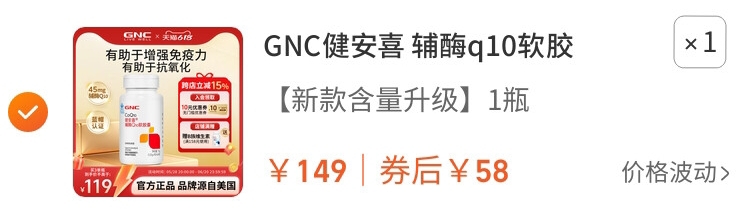 【¥49.52】GNC健安喜 辅酶Q10软胶囊*60粒