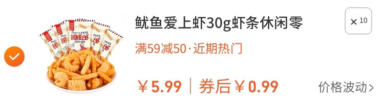【¥9.9】鱿鱼爱上虾 虾条鱿鱼酥30g*10包