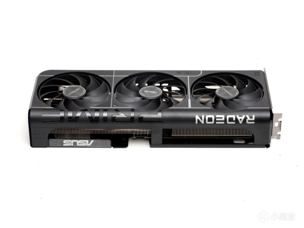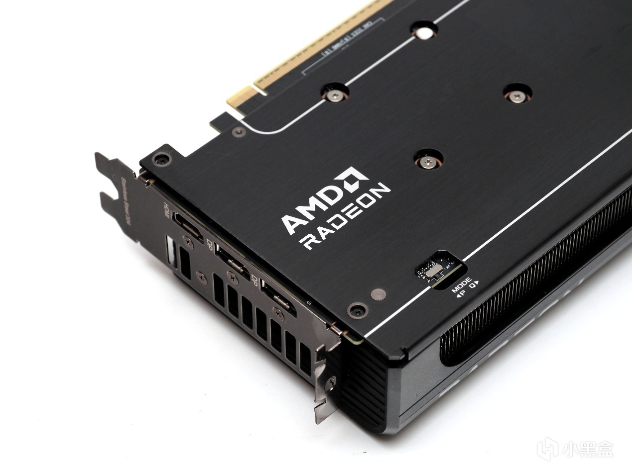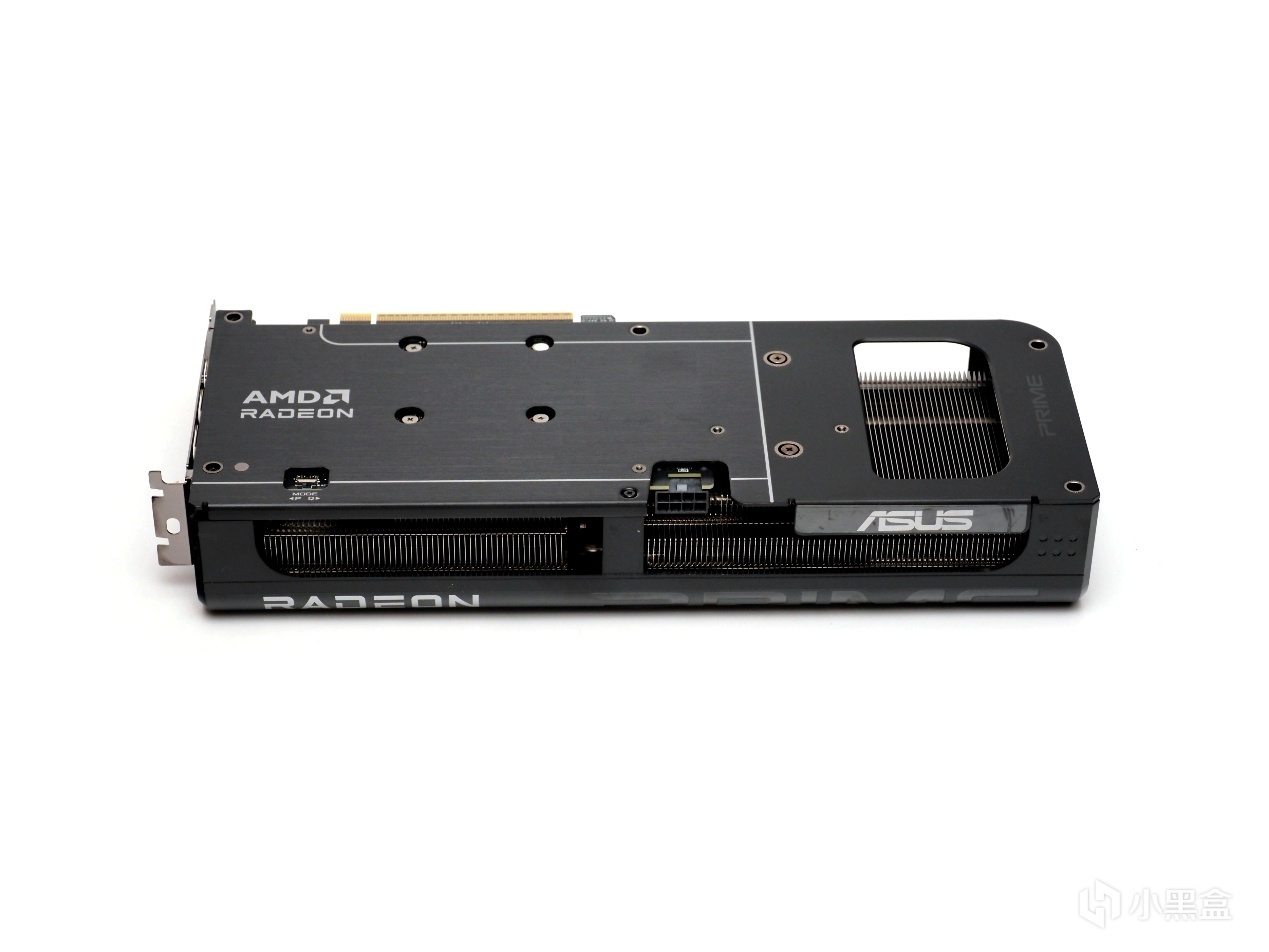 金属背板很有质感,还提供了风扇策略切换开关,不过默认的P档就很安静了。这次不知道为何9060XT只提供了三个视频输出口,规格都很高,一个HDMI 2.1FRL,两个DP 2.1,不过想来用这个级别显卡的用户大概也用不到三个以上的显示器吧......这年头显示器越来越大,能用上两个的用户还算不少,三个就是凤毛麟角了,四个及以上的显示器基本只见于炒股用户或者监控等特殊用户,自然也用不上9060XT这样的游戏卡了。砍视频输出接口这种事情,可以理解,但是比对手少,确实要吐槽一下!