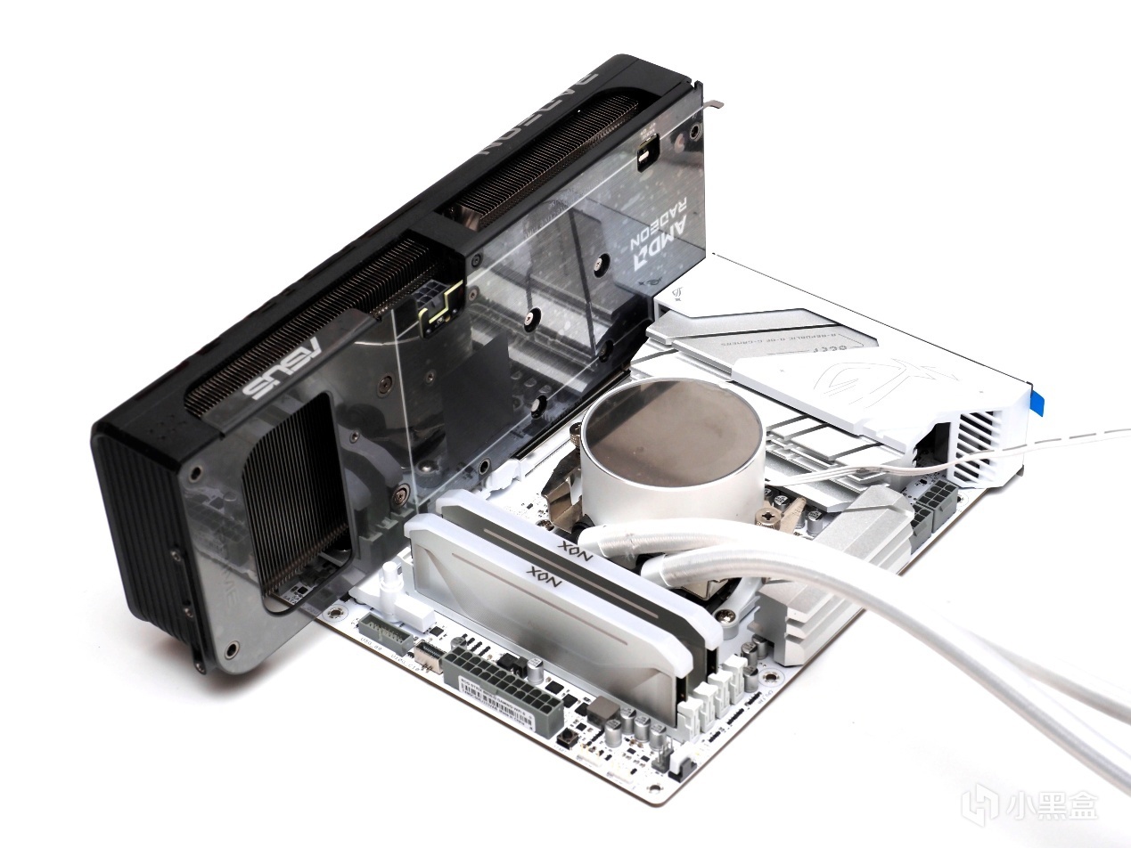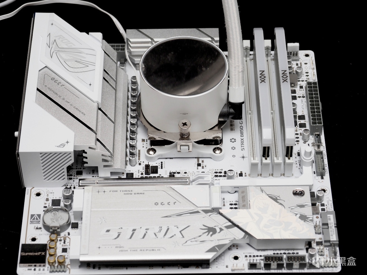 测试平台则是使用目前最强的游戏CPU:锐龙R7 9800X3D,搭配目前最有颜值的中高端MATX主板:华硕ROG STRIX B850G小吹雪,以及宇瞻Apacer为AMD平台专门打造的NOX DDR5 6000C28超低延迟内存,还有利民的FM280白色水冷,搭配出一套纯白测试平台——为什么华硕还不给A卡出白色!!!