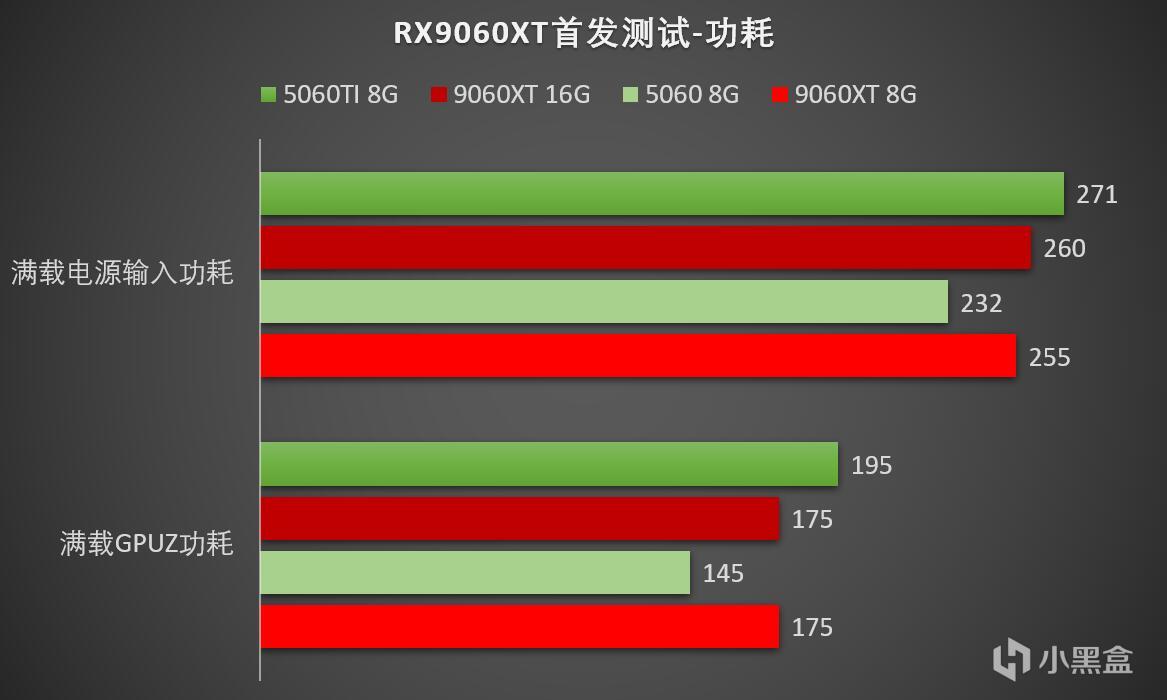 功耗性能方面,5060TI功耗最高,两张9060XT功耗类似,16GB版本稍高一点,5060能耗比确实不错,结合性能表现,5060TI真的是性价比非常差,无怪乎NV在这卡首发的时候只让评测16GB版本——那已经要近4000块钱了!