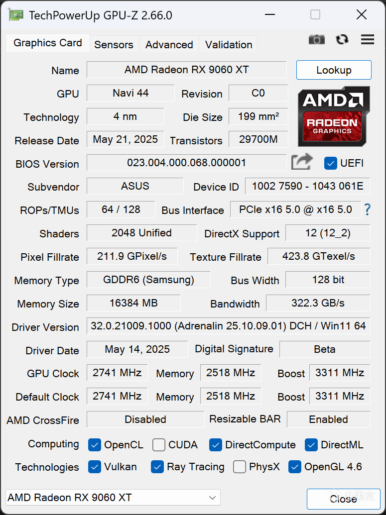 显卡:华硕Prime Radeon RX9060XT 16GB/8GB