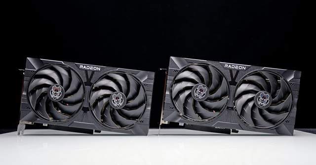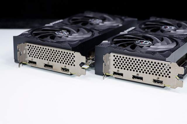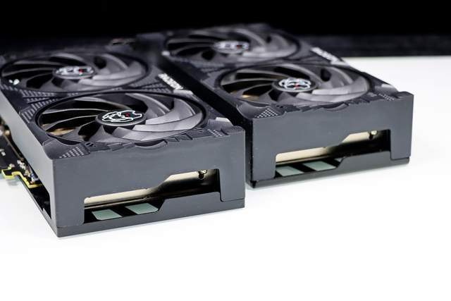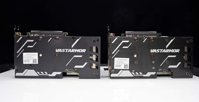 ▲ 这两张卡其实大小上是一模一样的。什么?你觉得右侧大一点?不好意思,那是视错觉。因为右侧的 PCI 挡板处会垫高,所以给你右侧会偏大的视错觉!