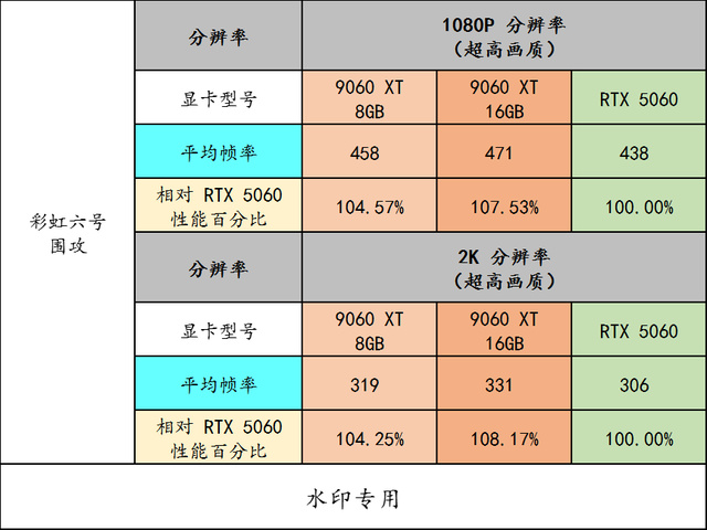 ▲ 三张显卡的 《彩虹六号:围攻》游戏性能实测,以 RTX 5060 为对照组。