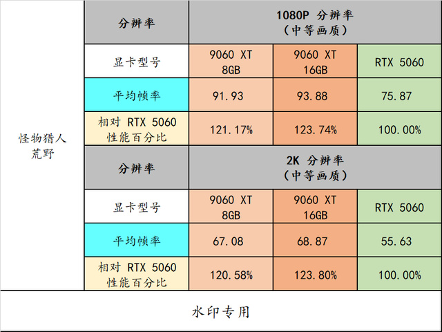 RX 9060 XT 16GB 比 RTX 5060, 在 1080P 分辨率 + 中等画质下 强 23 %,在 2K 分辨率 + 中等画质下 强 23 % 。
