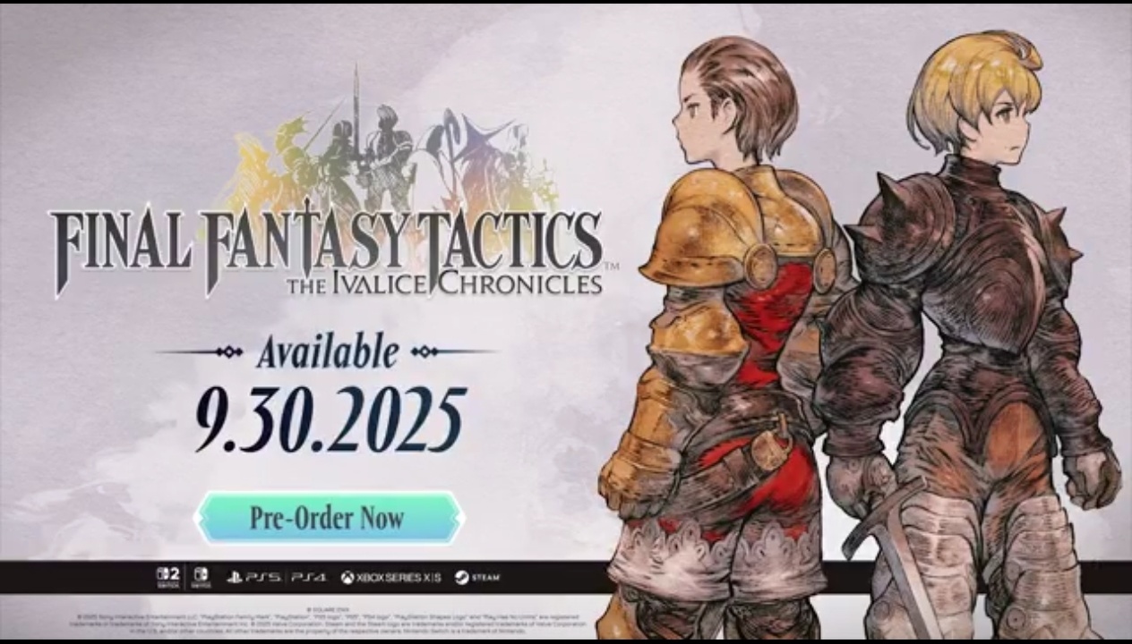 一部气势恢宏的史诗巨作强势回归,以前所未有的叙事方式呈现。《最终幻想战略版-伊瓦利斯编年史》将于9月30日登陆Nintendo Switch 2、 Nintendo Switch、 PlayStation 5、PS4、Xbox Series XIS和Steam 平台