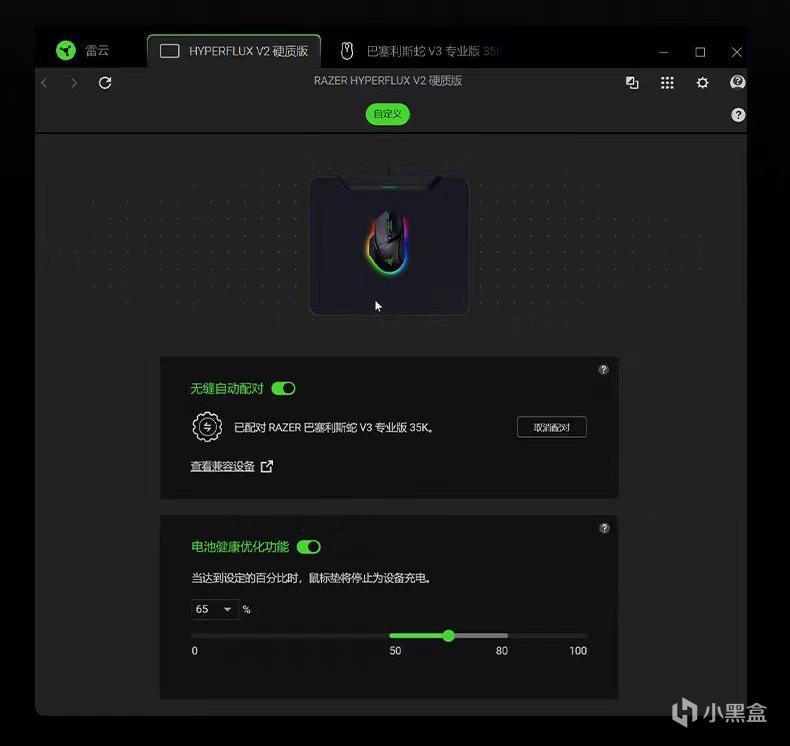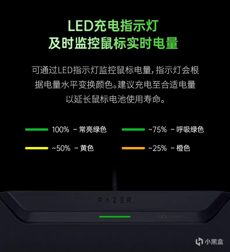 雷蛇 HyperFlux V2無線充電套裝在鼠標與無線充電鼠標墊配對使用時,當鼠標的電量低於設定的值,鼠標墊會自動爲鼠標充電,爲玩家提供無間斷的遊戲體驗。