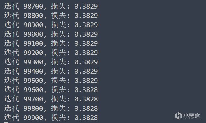 現在調整學習率,調整迭代次數,我希望讓我的模型更加準確一點,損失函數值儘量小,再參考等級大致在0~40,我選擇學習率爲0.001,迭代次數100000次